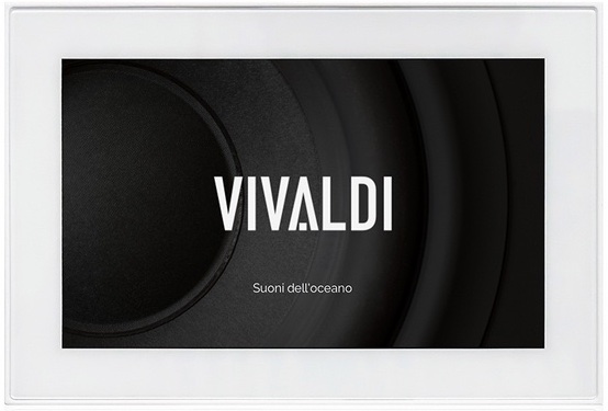 Versione TOUCH del dispositivo multimediale audio, per integrazioni domotiche, amplificazione stereo, microfono, con sorgenti e player integrati