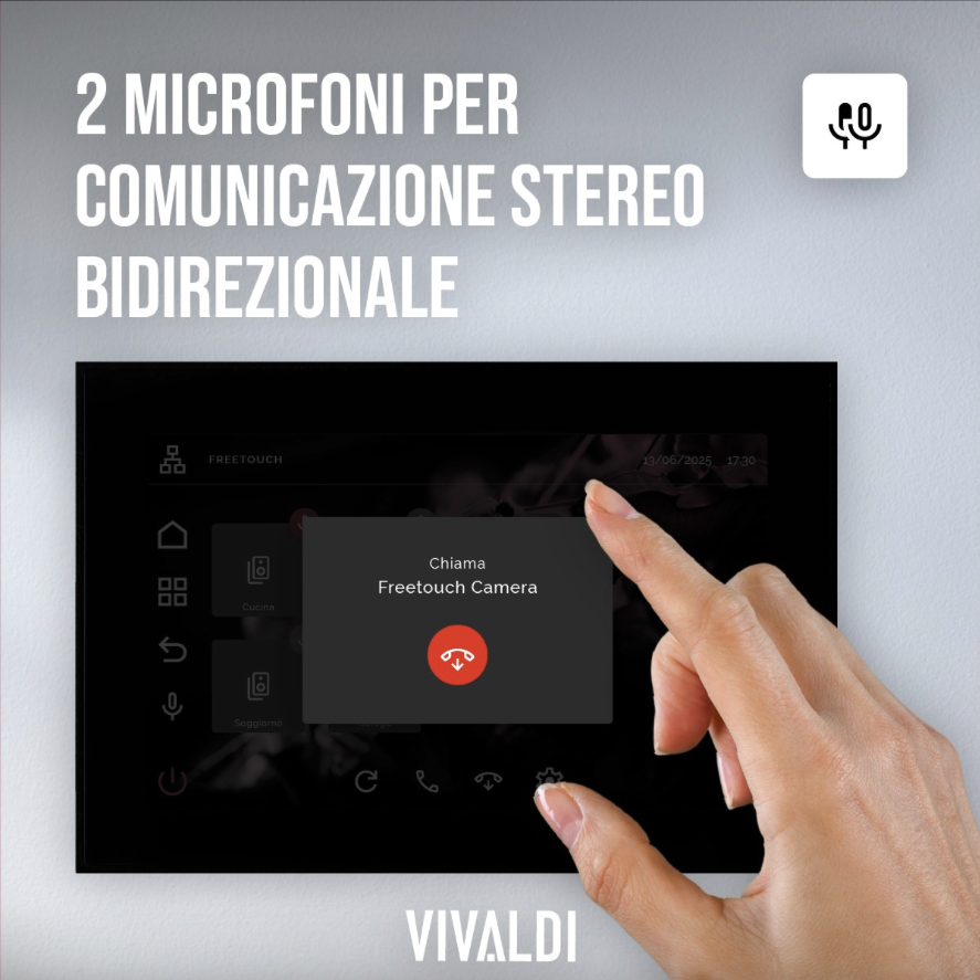 Con il suo display touch da 5”, per una risoluzione da 800x480px FREETOUCH si conferma un dispositivo tecnologico ma anche un pezzo di design. |