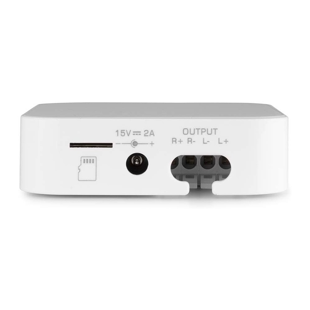 Il dispositivo deve essere collegato alla tua rete WiFi domestica e tutta la musica presente sullo smartphone verrà trasmessa in streaming attraverso l'amplificatore da 2x15W incorporato. Il volume è controllabile solo tramite smartphone o tablet.